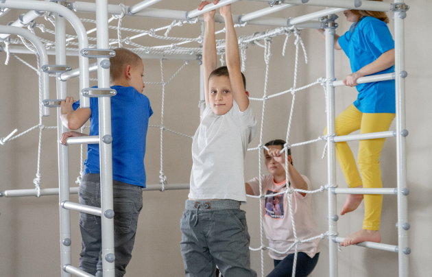 Our play gyms are designed for children aged 3 years and older, but adults can enjoy them too. They can support up to 220 lbs, while accessories can hold up to 110 lbs.